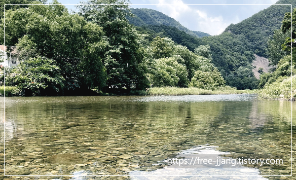 한낮에도 따가운 태양 빛을 가려주는 울창한 숲과 바닥이 훤히 들여다보이는 맑은 물은 천혜의 피서지가 따로 없다.